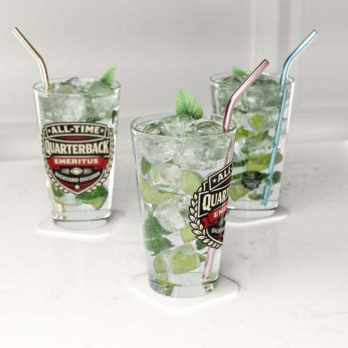 "All-Time Quarterback, Emeritus" — 16oz Pint Glass for Home Bar, Gifts & Parties